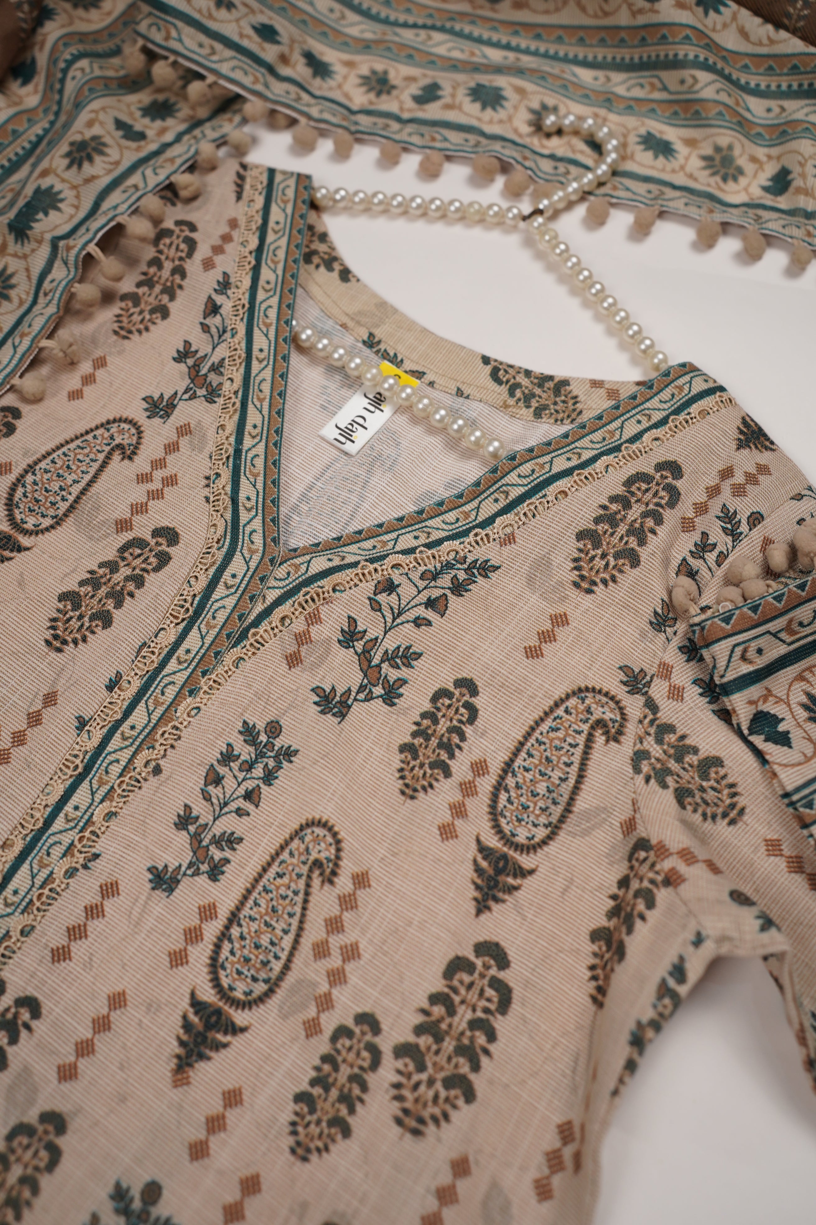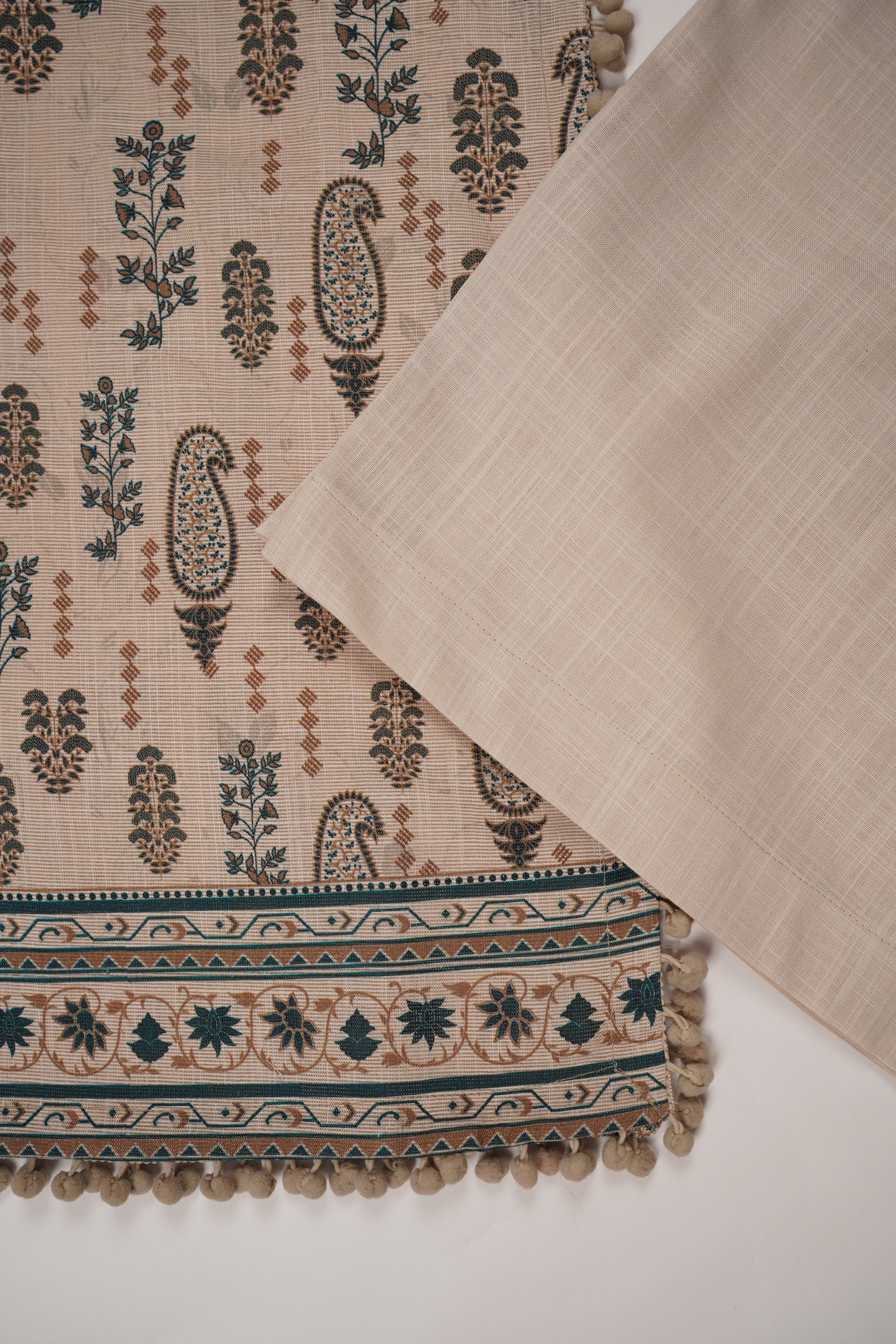 This khaddar ladies suit is crafted for style and warmth, perfect for winter wear. Featuring a soft yet durable texture, it includes a beautifully tailored shirt and matching trousers. The breathable fabric ensures comfort, while the rich design adds elegance, making it suitable for both casual outings and semi-formal gatherings.