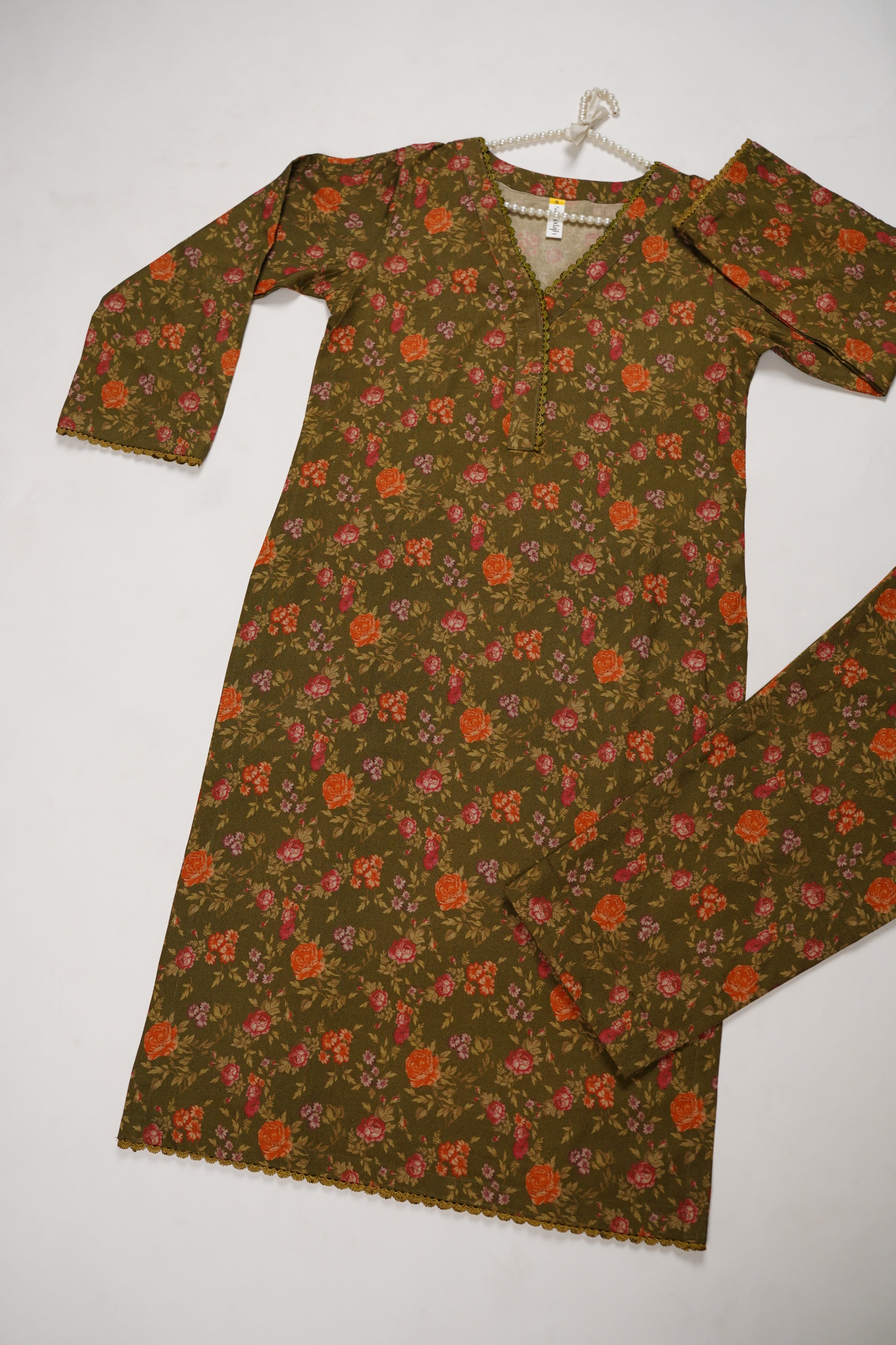 This elegant Dhanak single ladies suit features a Mongia fabric adorned with delicate Flower prints, perfect for any occasion. The breathable material ensures comfort, while the intricate design adds a touch of sophistication. Ideal for casual outings or festive celebrations, this suit effortlessly blends style and grace.
