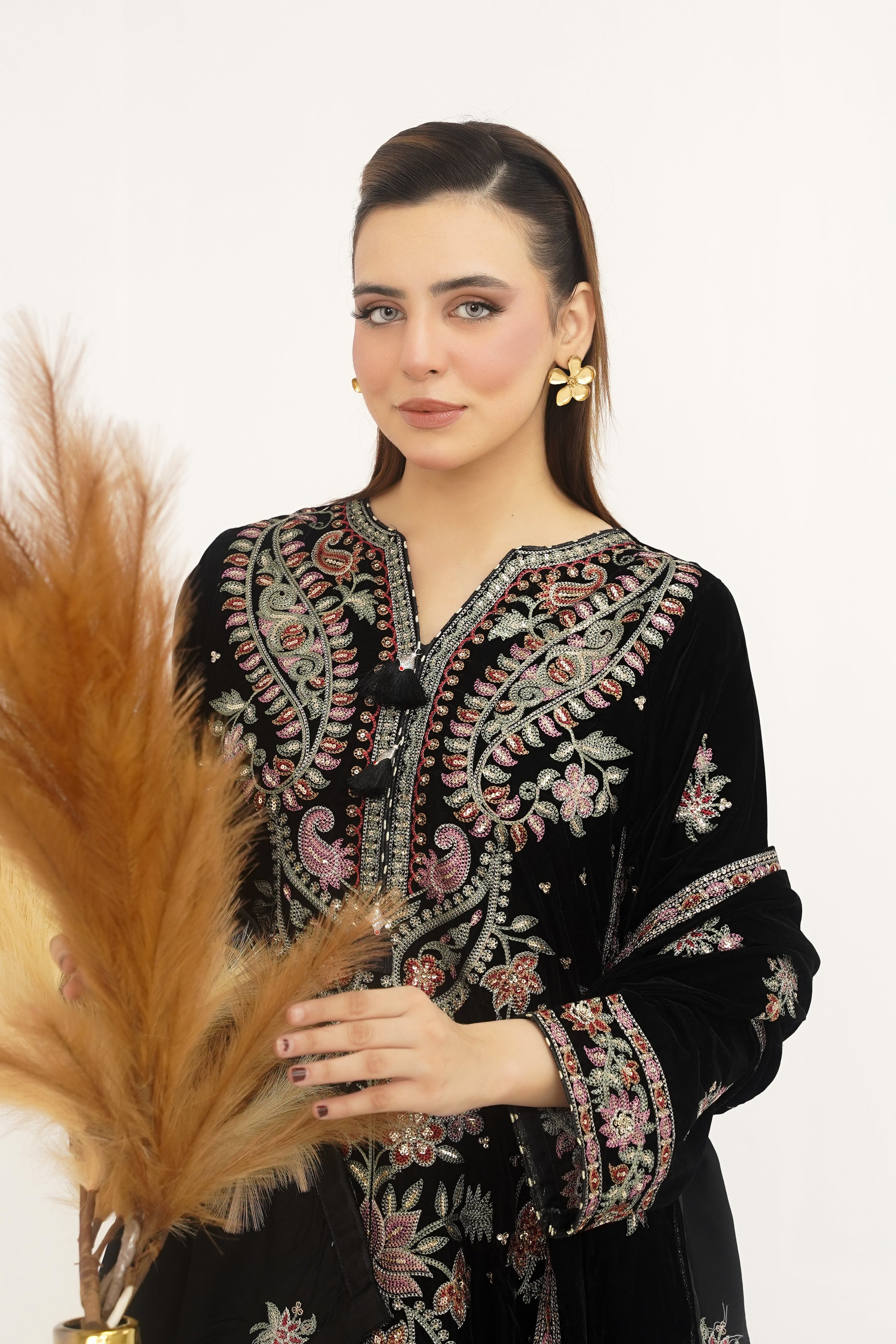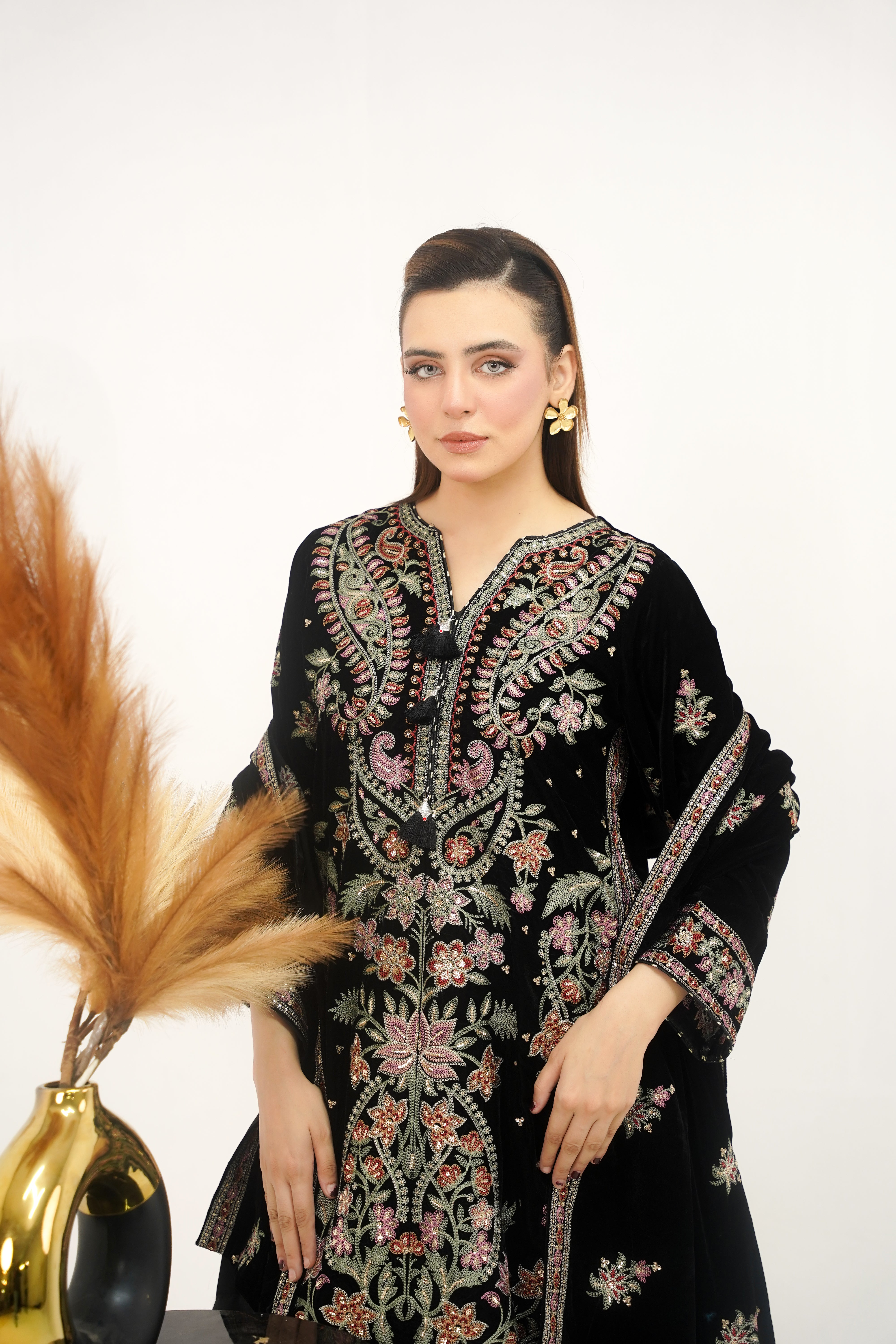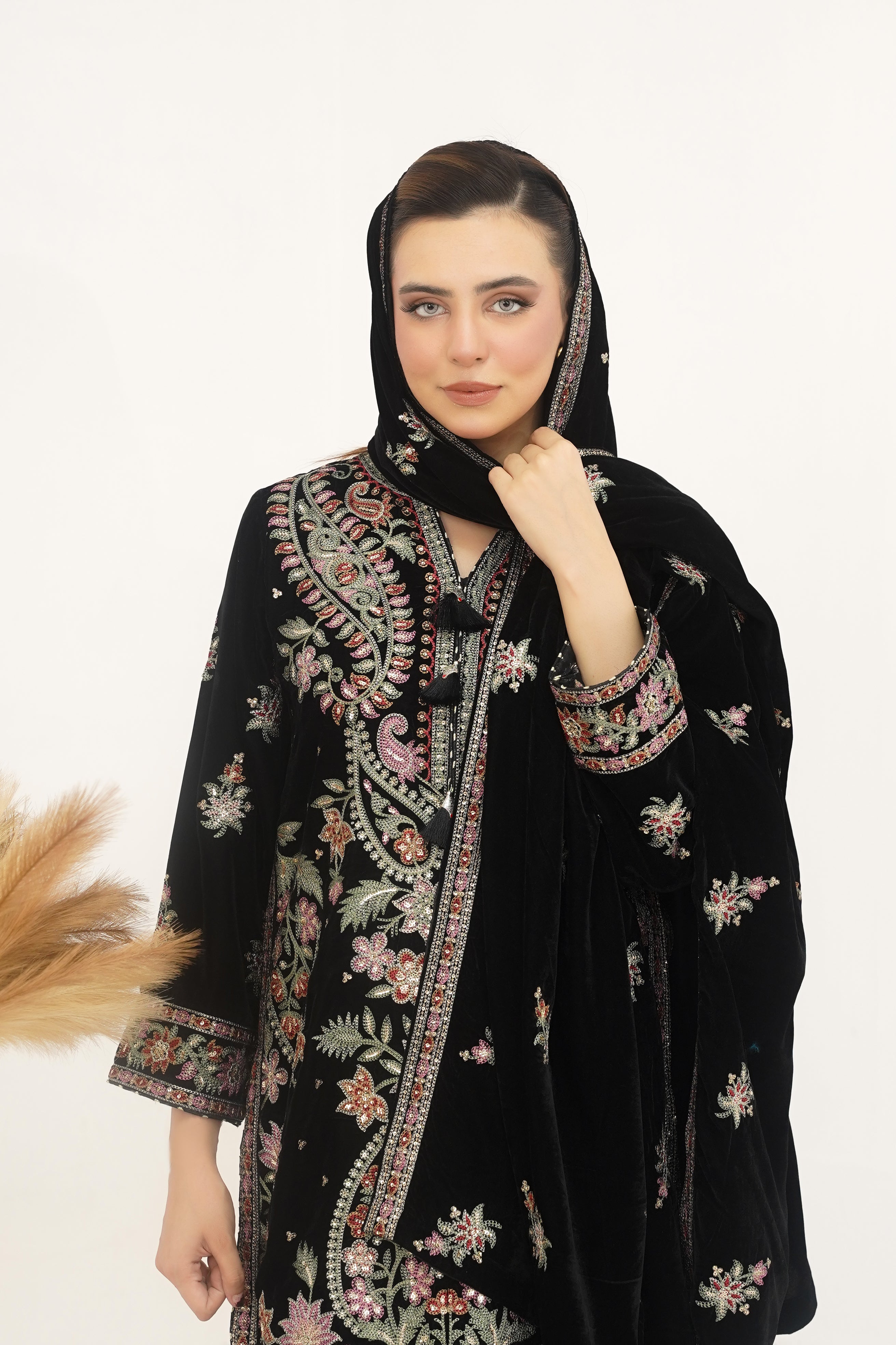 Rozi - Luxury Velvet Outfit with Embroidered Velvet Shawl