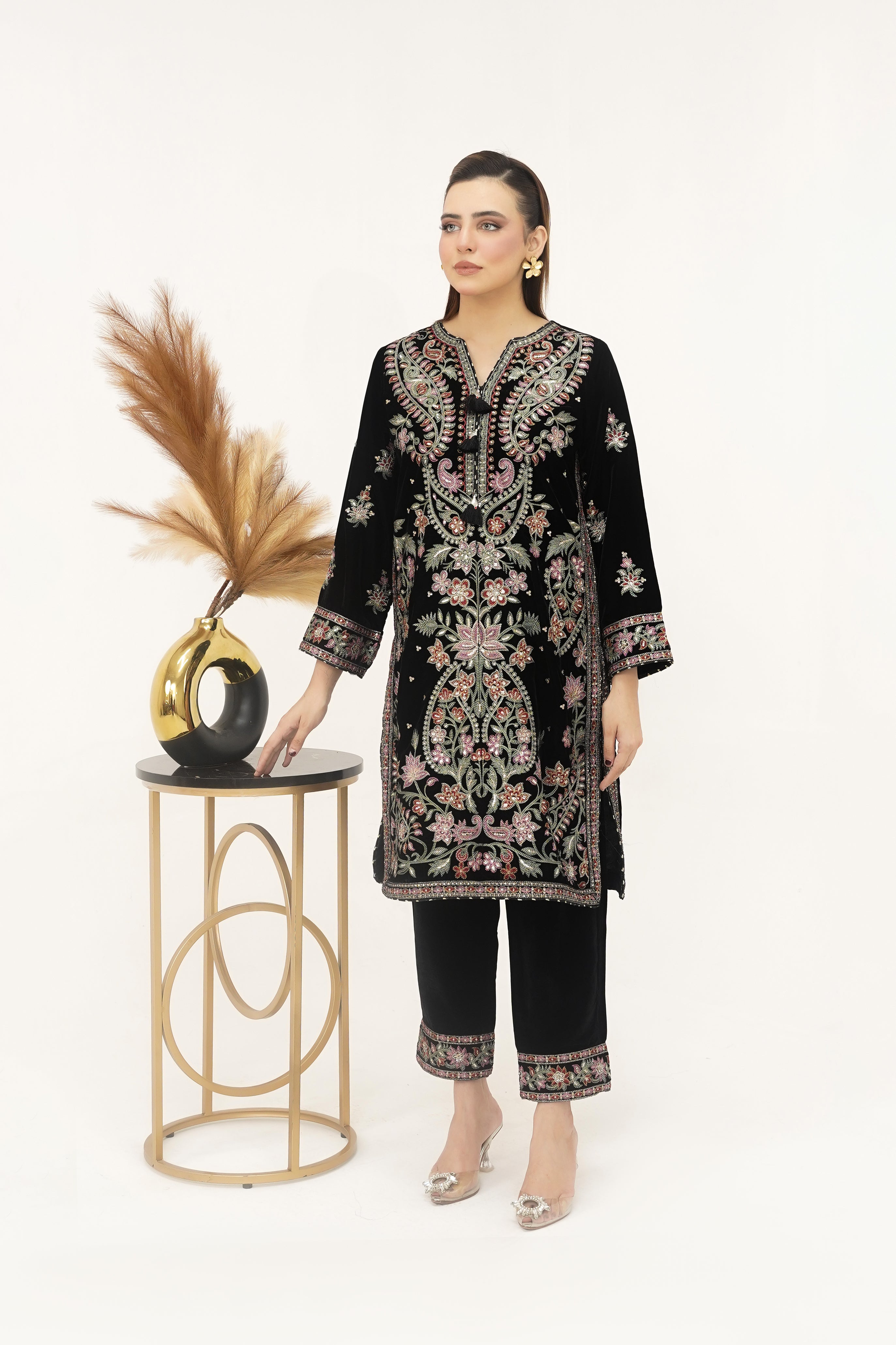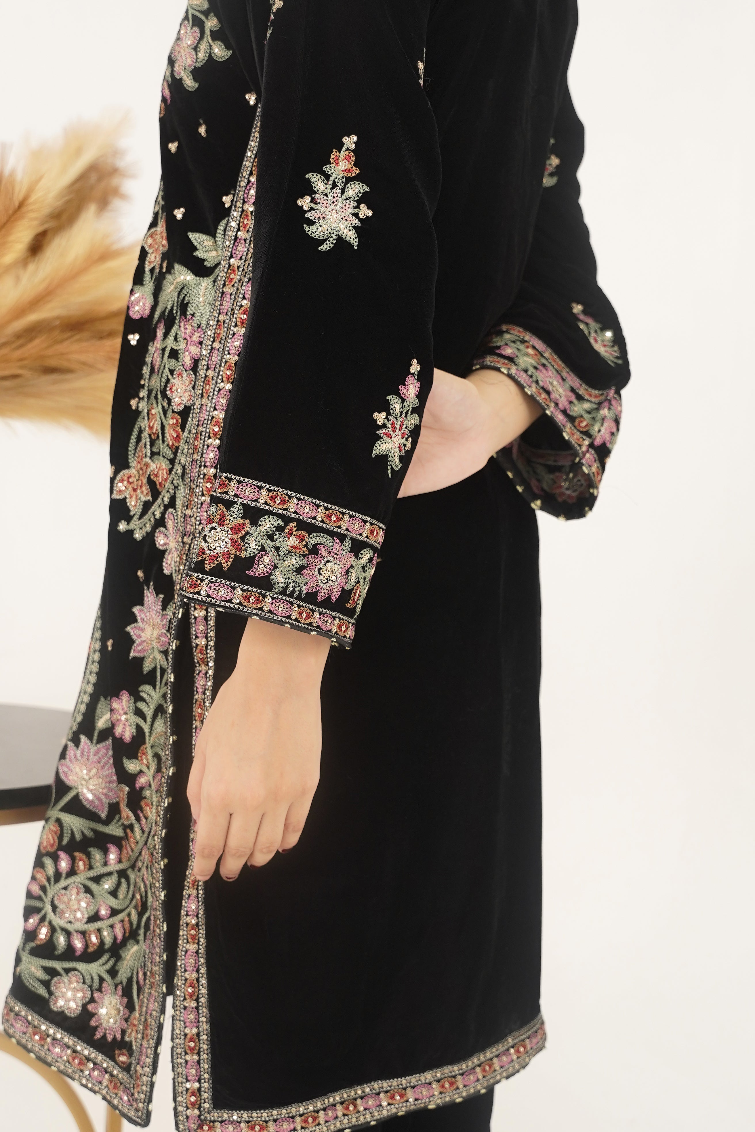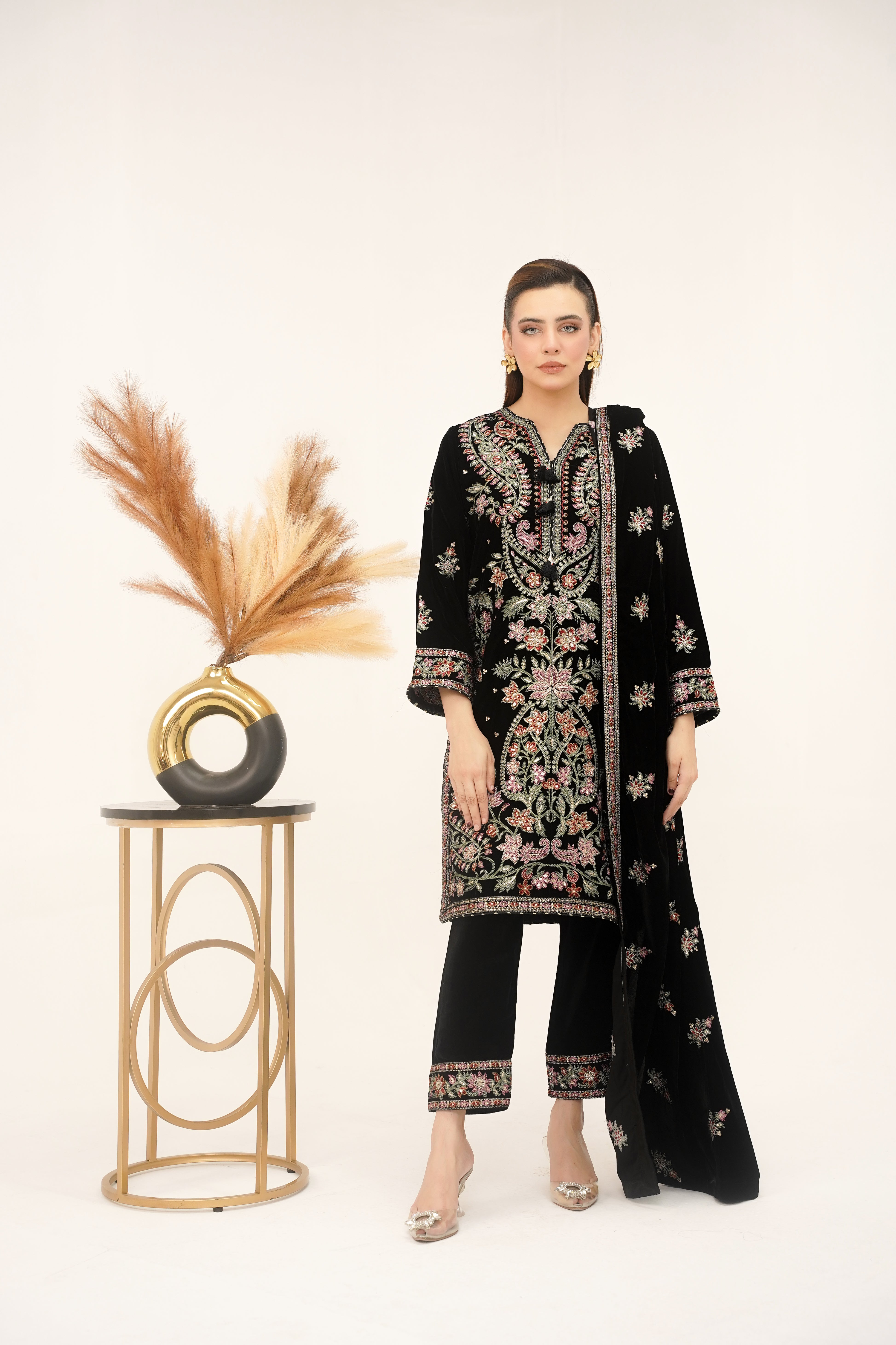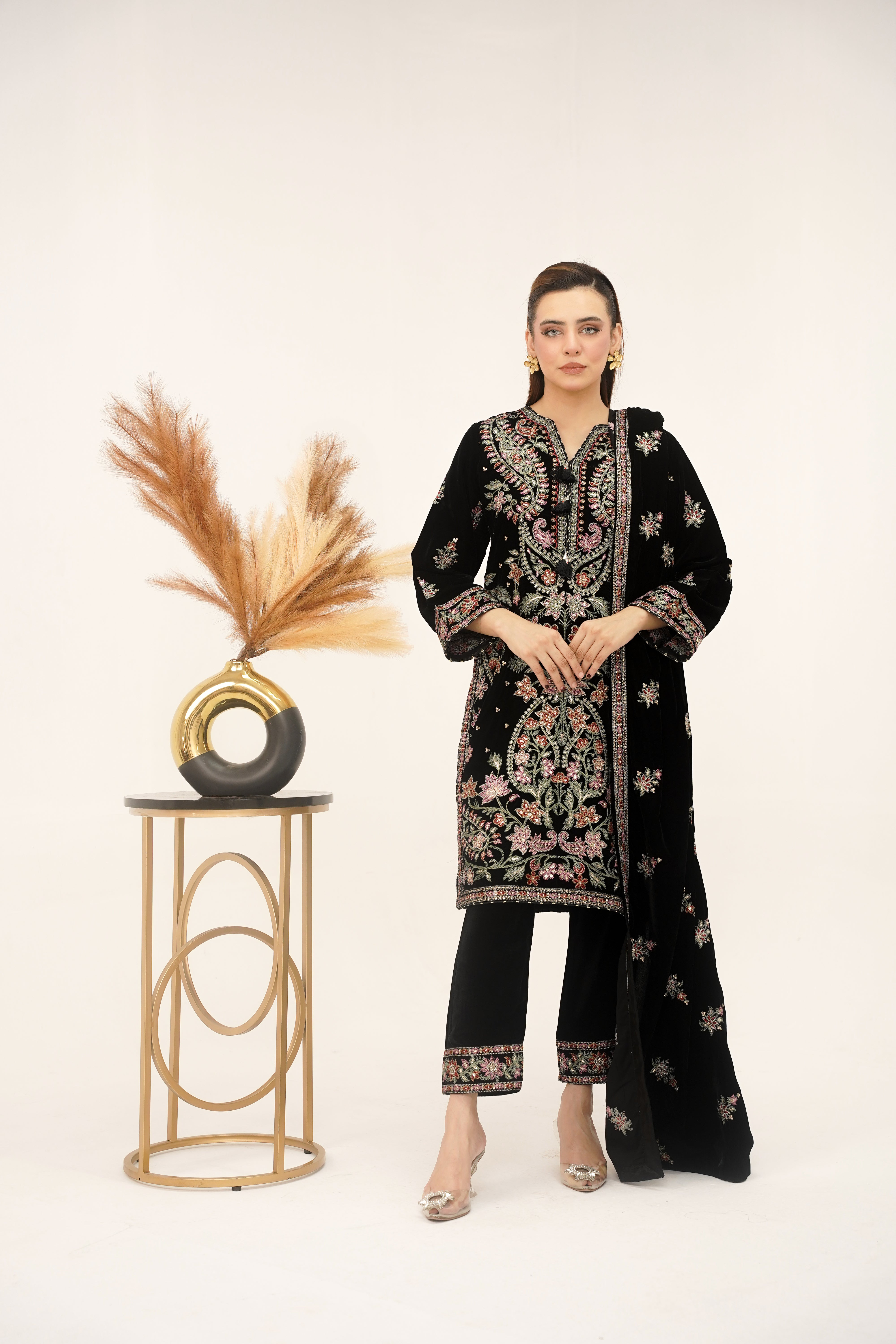 Rozi - Luxury Velvet Outfit with Embroidered Velvet Shawl