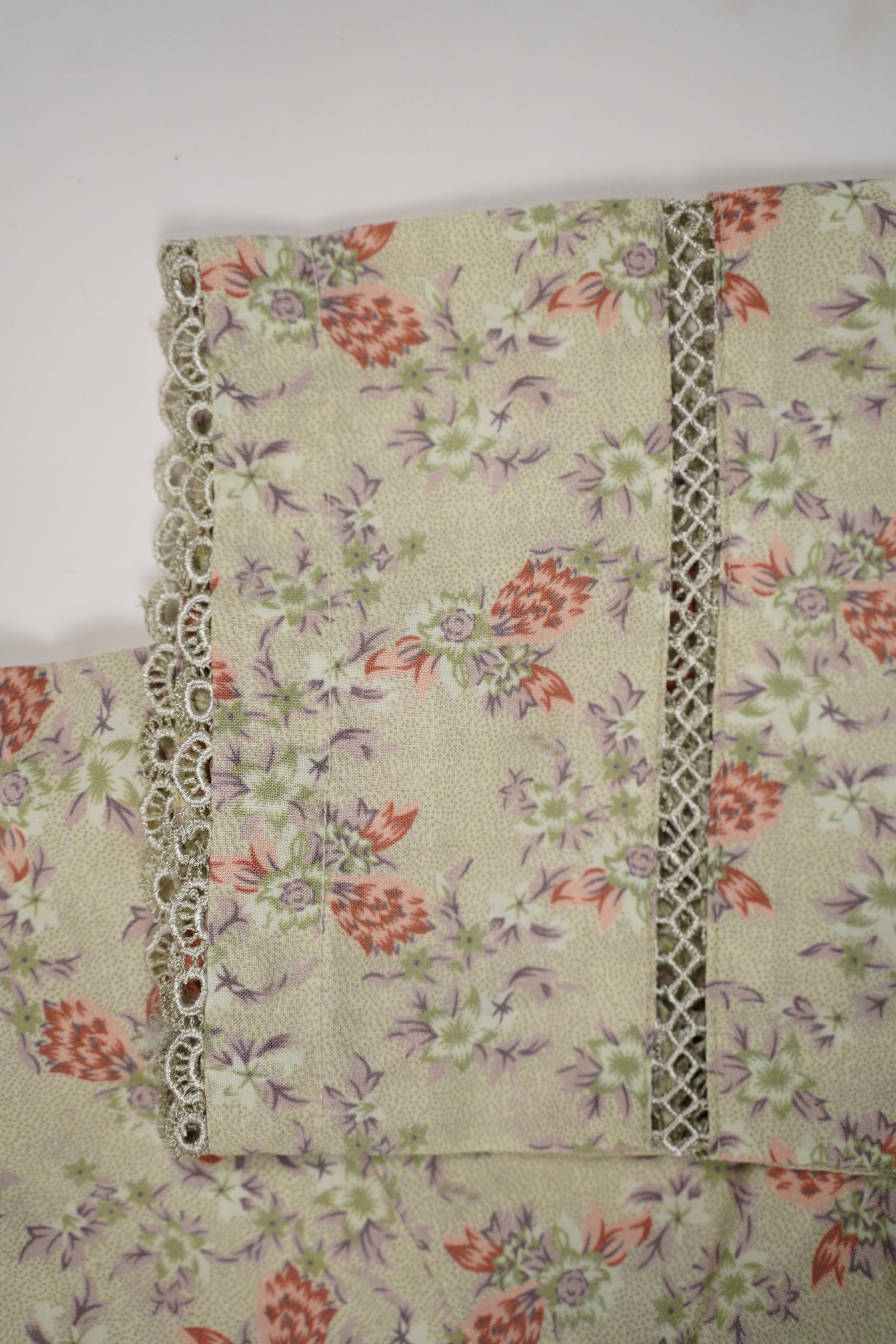 This elegant ladies' linen suit features a soft, Green-toned base with a vibrant flower print. The lightweight, breathable fabric ensures comfort, while the eye-catching floral design adds a touch of femininity and flair. Perfect for warm weather, this suit combines style and sophistication in a versatile, easy-to-wear outfit.