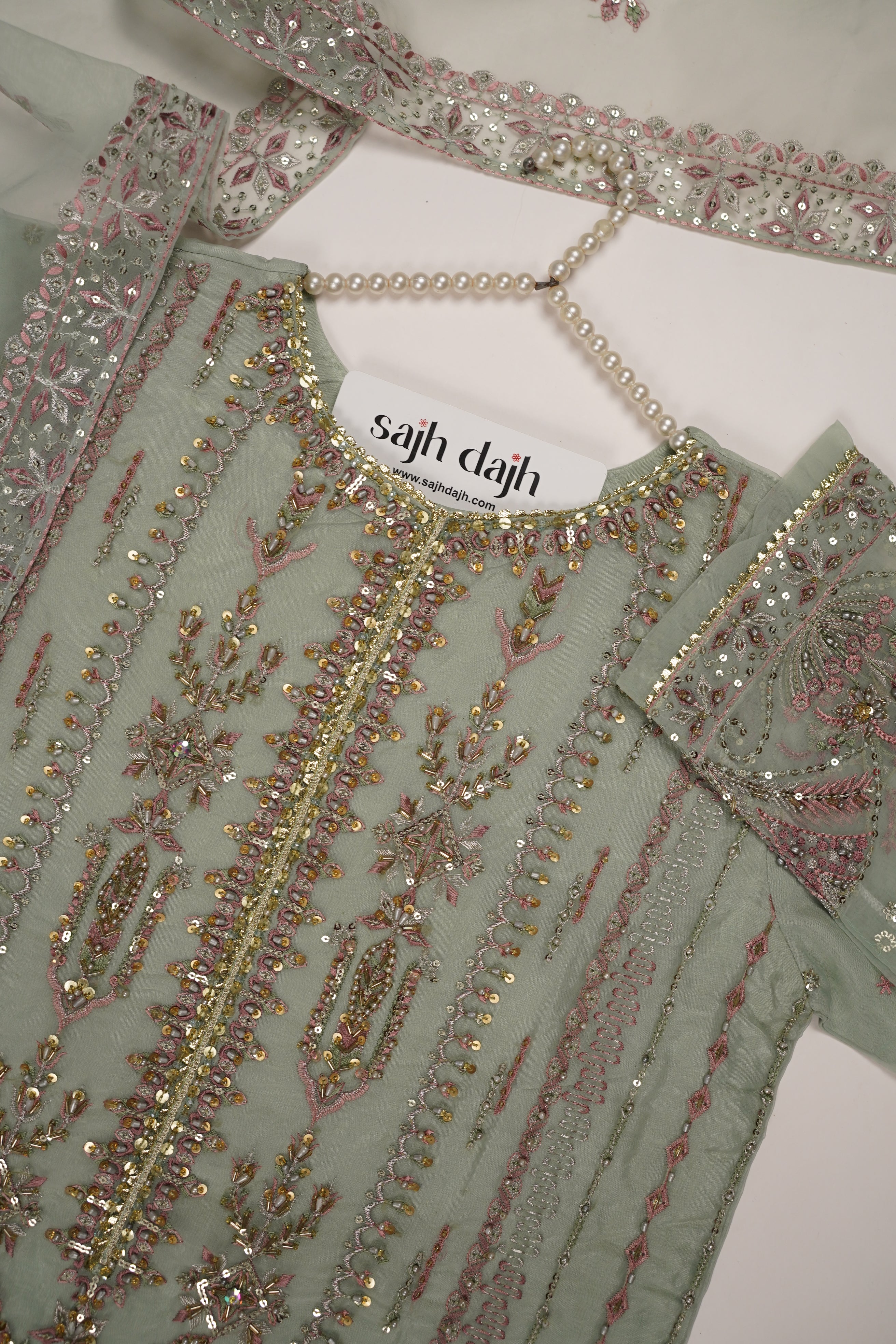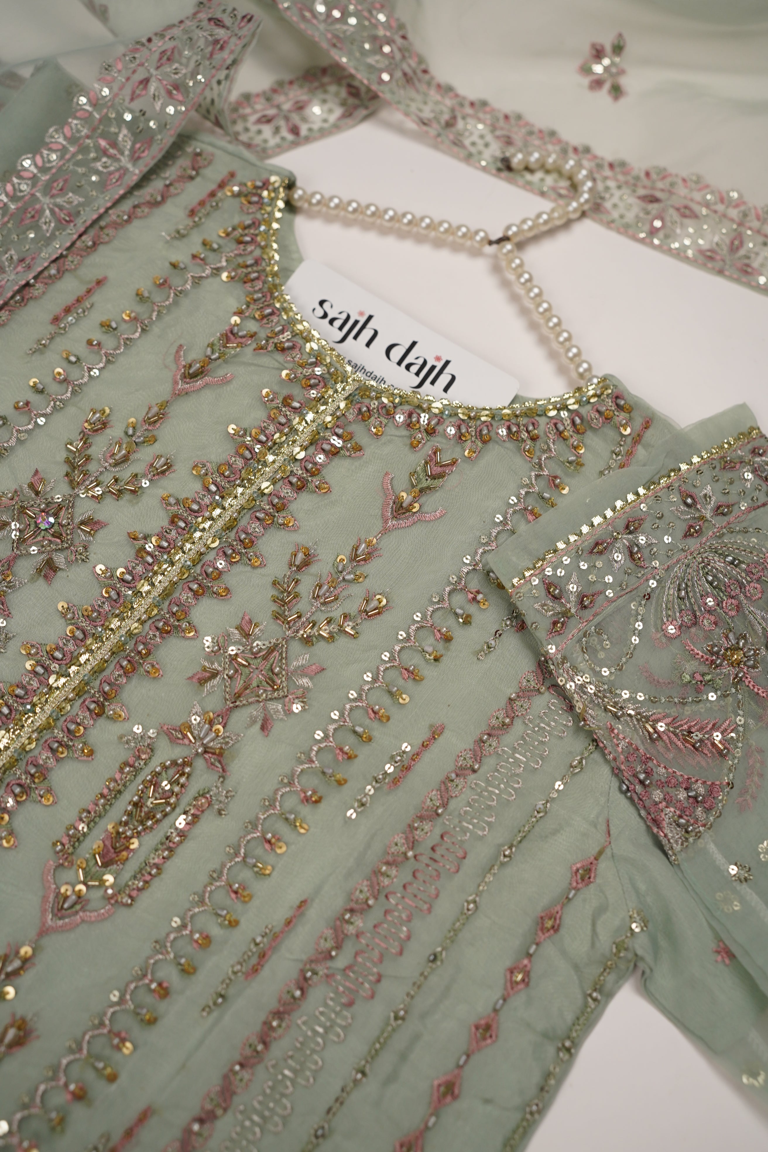 Elevate your style with this elegant ladies organza suit, featuring delicate embroidery and a luxurious sheer texture. The lightweight fabric drapes beautifully, offering both grace and comfort. Ideal for festive occasions and formal gatherings, this outfit blends traditional charm with modern sophistication for a timeless, captivating look.